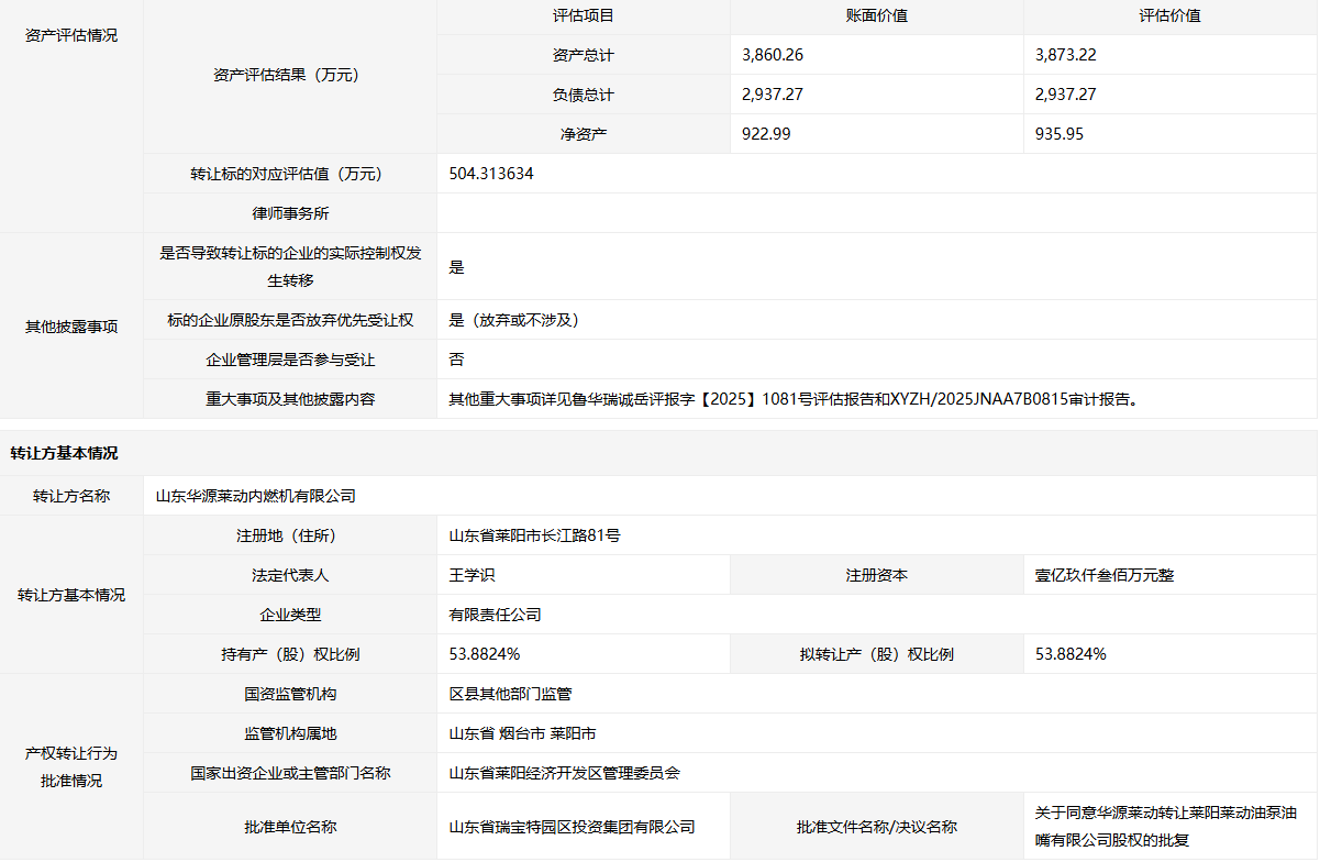 轉(zhuǎn)讓方: 山東華源萊動內(nèi)燃機有限公司