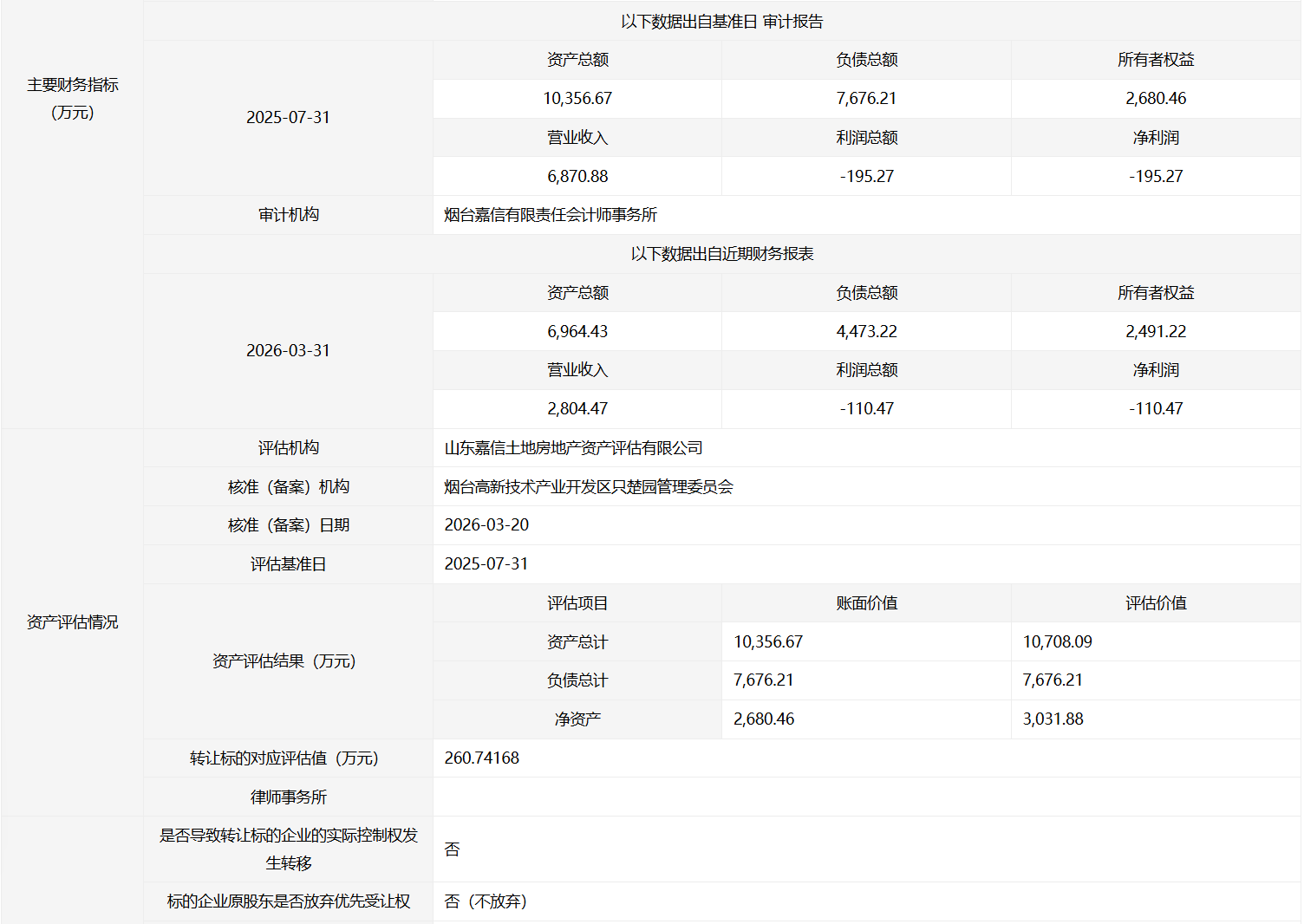 轉(zhuǎn)讓方:煙臺(tái)市楚順投資有限公司