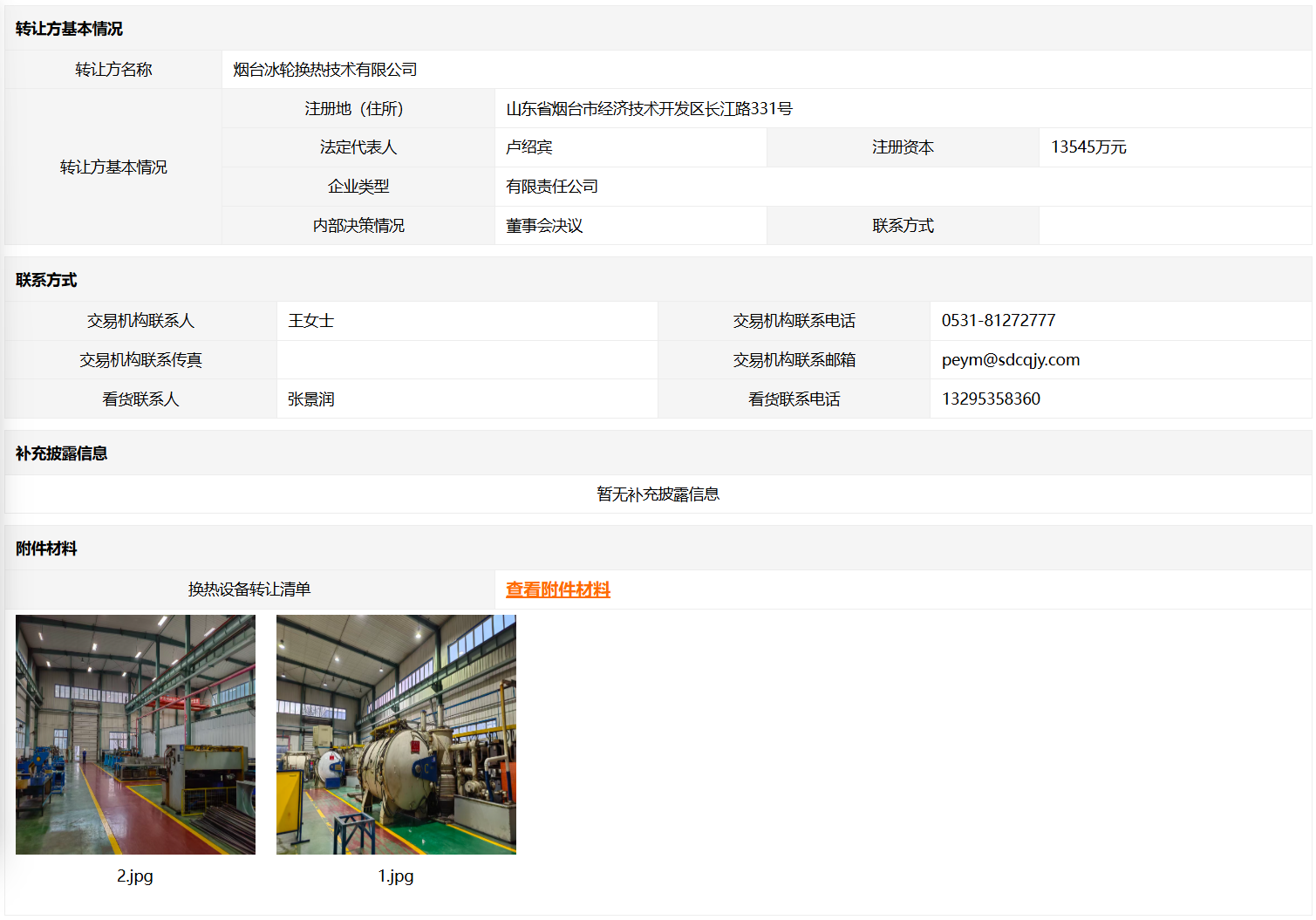 轉(zhuǎn)讓方:煙臺冰輪換熱技術(shù)有限公司