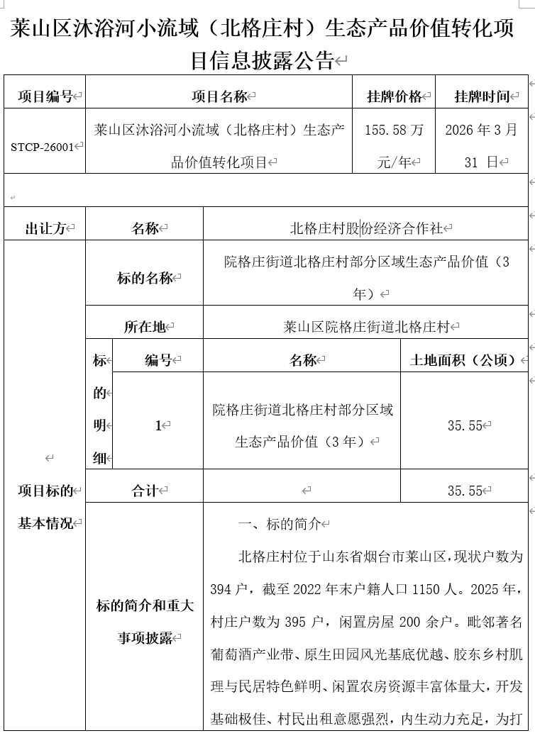 掛牌起止日期:2026年3月31日-2026年4月7日