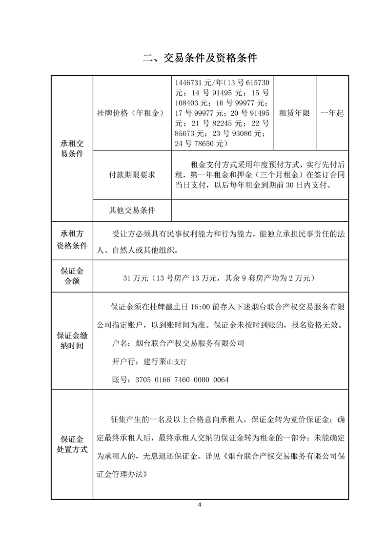 • 保證金:31萬元(13號(hào)房產(chǎn)13萬元,其余9套房產(chǎn)均為2萬元)