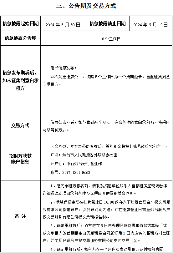 • 掛牌起止日期:2024年05月30日至2024年06月12日