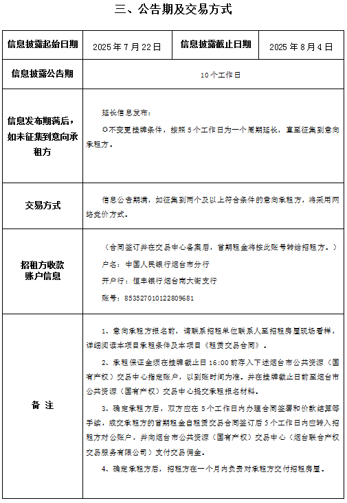 • 掛牌起止日期:2025年7月22日至2025年8月4日